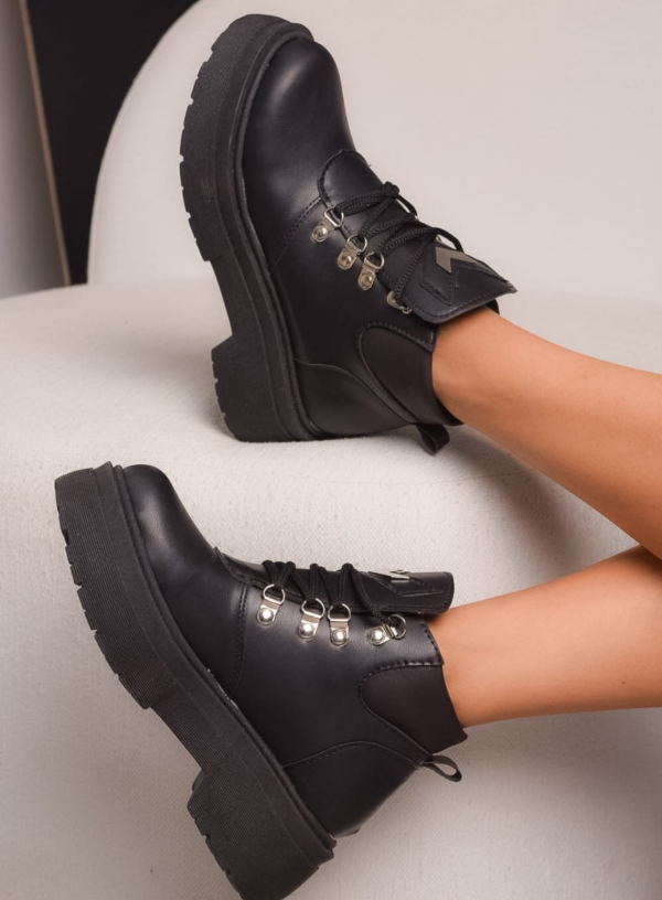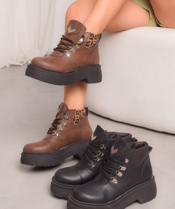 Borcegos de eco cuero, con elástico lateral y cordones . Aplique en la lengüeta. Base de espansor.