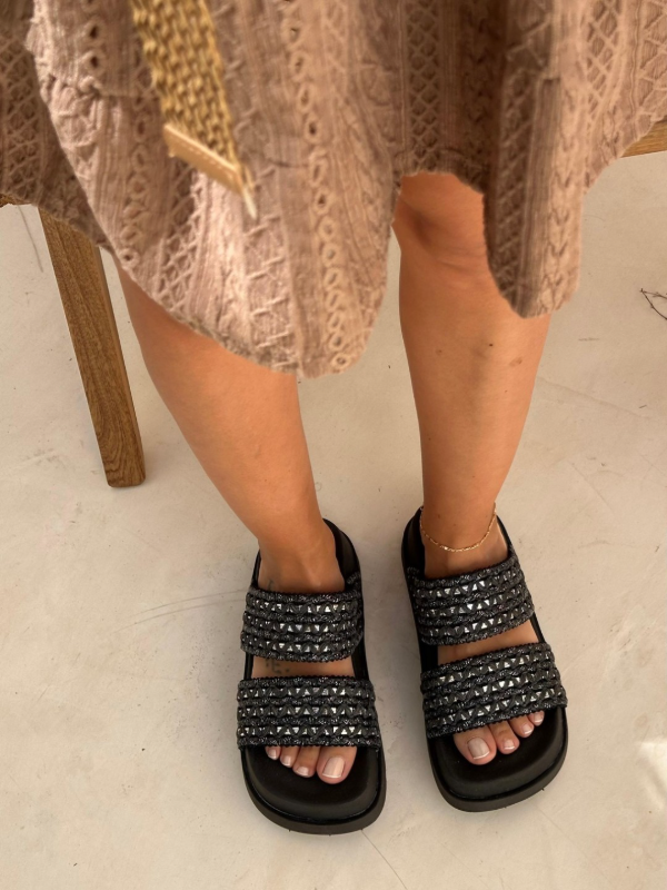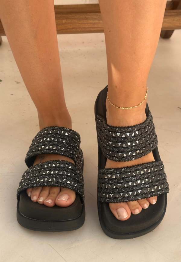 Sandalias con capellada diseñada de tela ,base de goma Eva de alta densidad