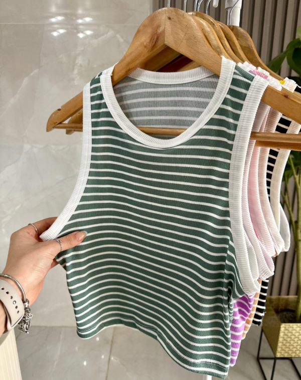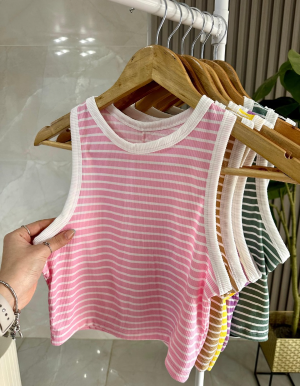 Musculosa rayada, talle único. Sede hasta un 2/3 aprox. Son cortas.