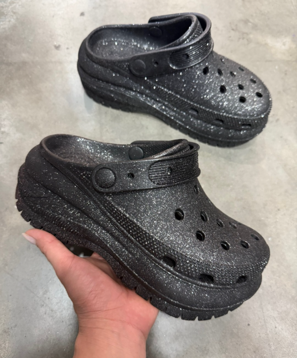 Crocs de goma inyectada de alta densidad. Cubierta de brillos. Vienen en bolsa!