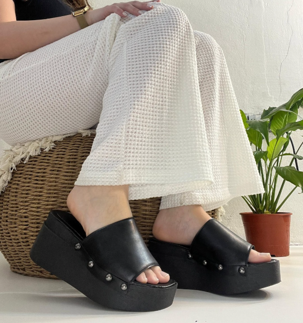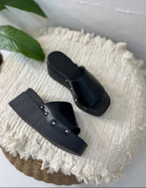 Suecos con tachas de costado, plataforma de 8 CM aproximadamente. Cómodos y livianos