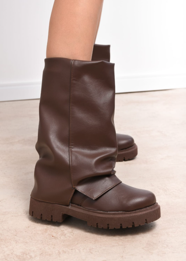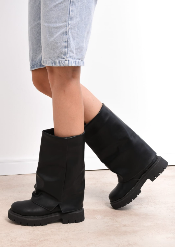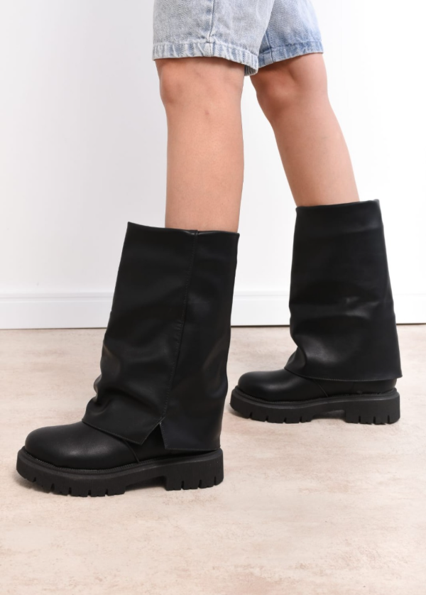Botas tipo borcego con volcado, de cuero ecológico premium. Cómodas cancheras y versátiles