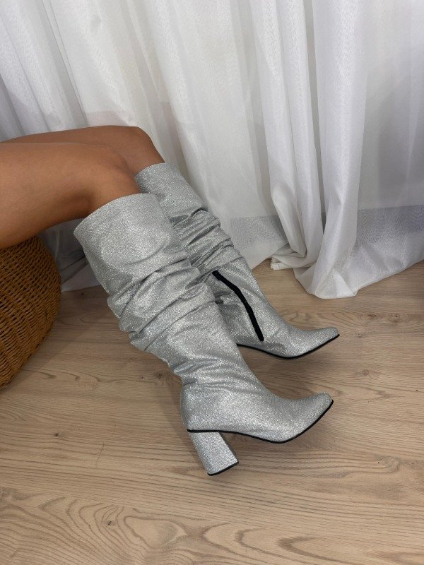 Botas forradas, súper lindas! Capellada eco cuero premium y lurex. Forrería acolchonada. Taco de 7 CM. Circunferencia ancha