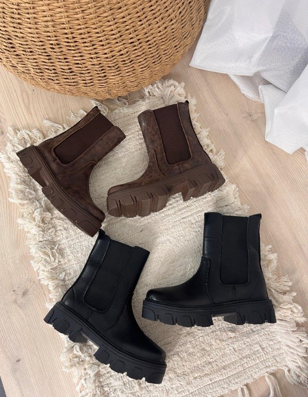 Botas/borcegos con elástico en los laterales. Forrería acolchonada. Base espansor 4 CM.