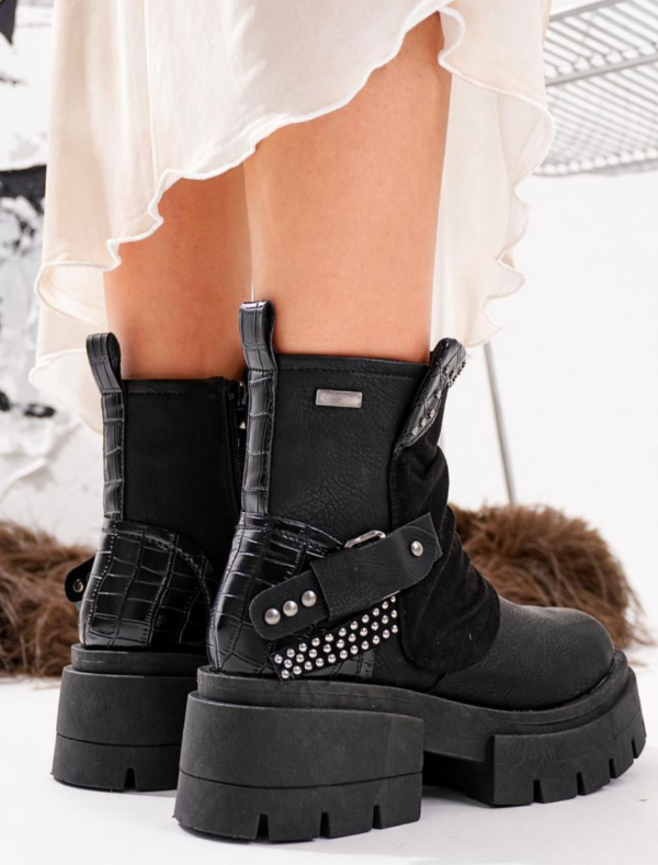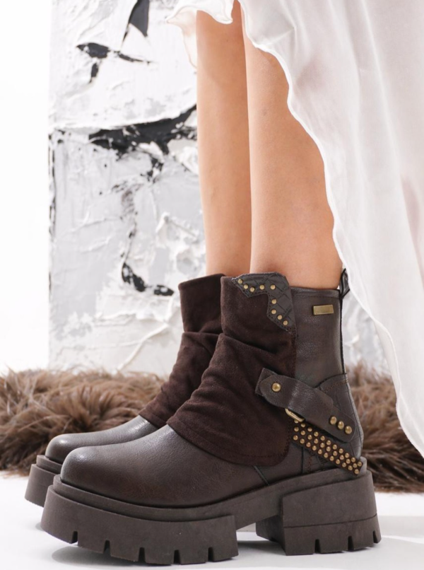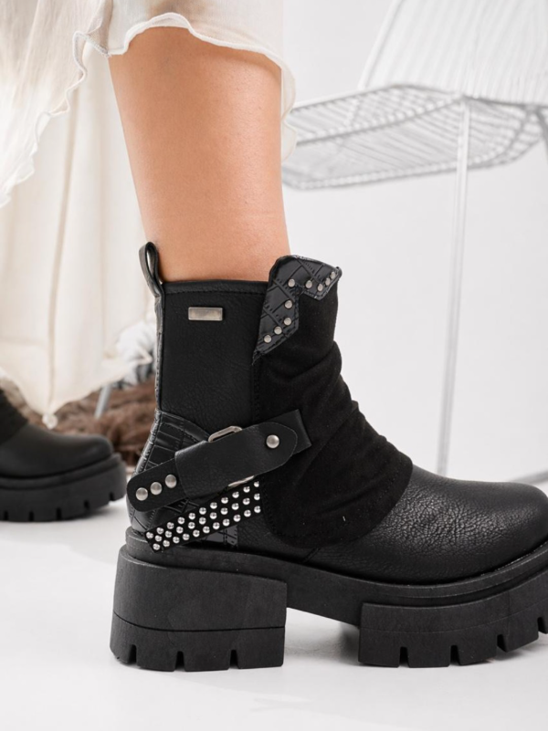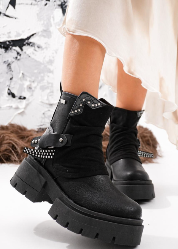 Borcegos de cuero vegans,importada, con detalle de gamuza y tachas . Taco de 5 CM aproximadamente