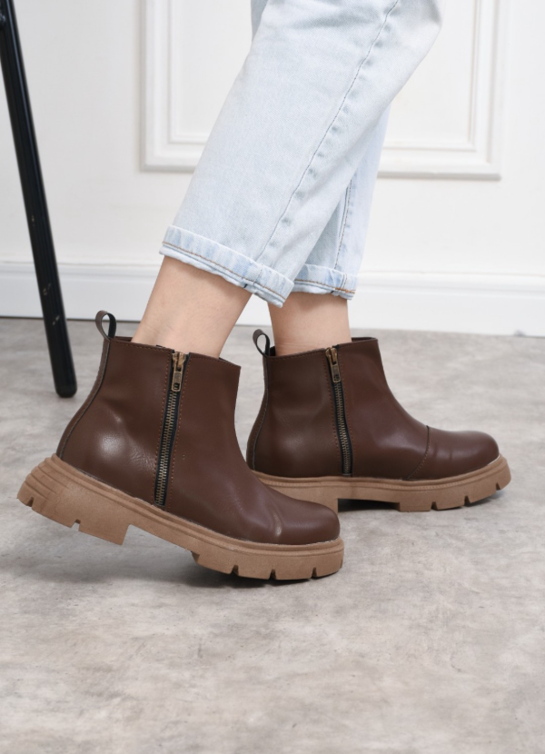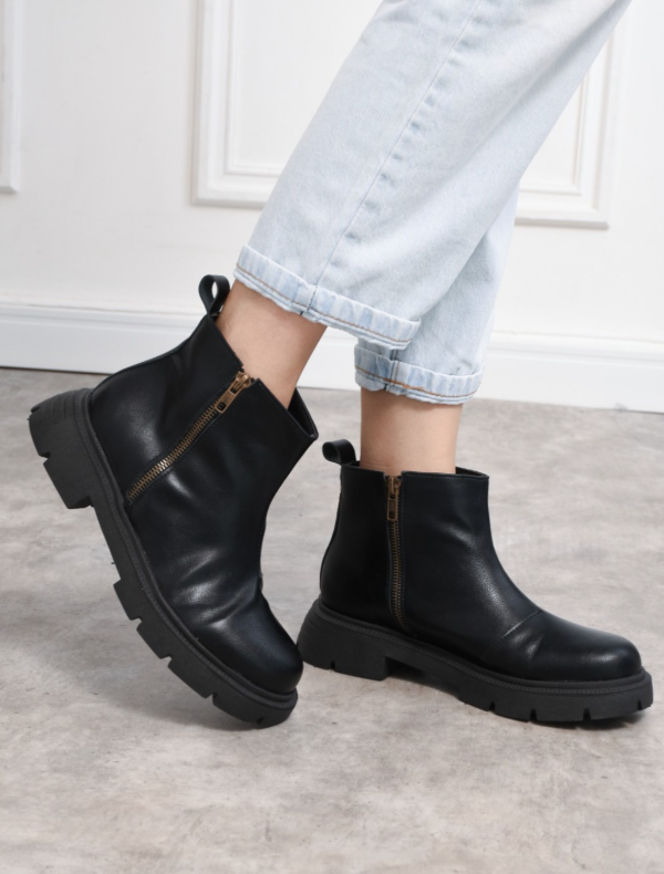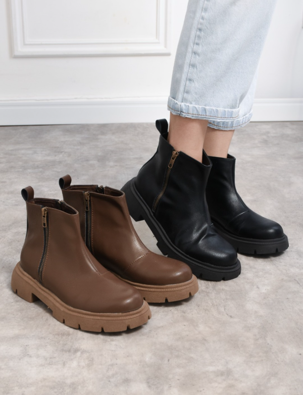 Borcegos de cuero ecológico, con cierre lateral. Base liviana apta para todos los días en sus dos colores favoritos y en tendencia .