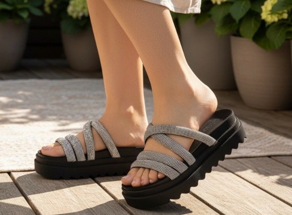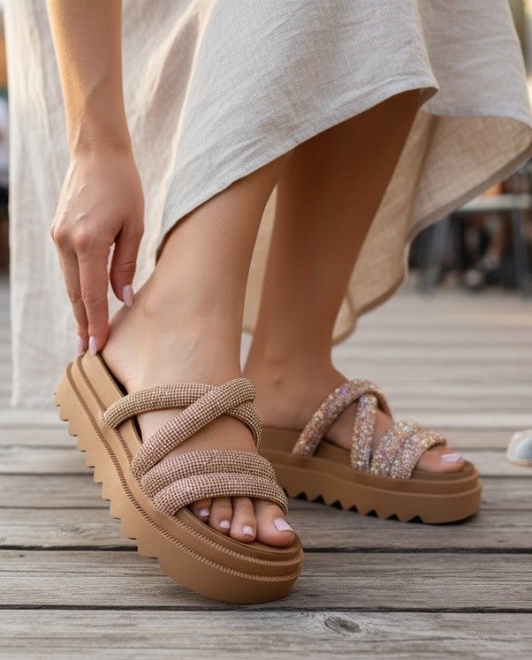 Sandalias con capellada full strass, con base de goma Eva alta densidad. Súper cancheras!!