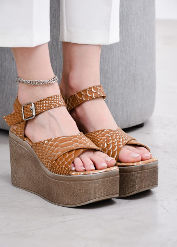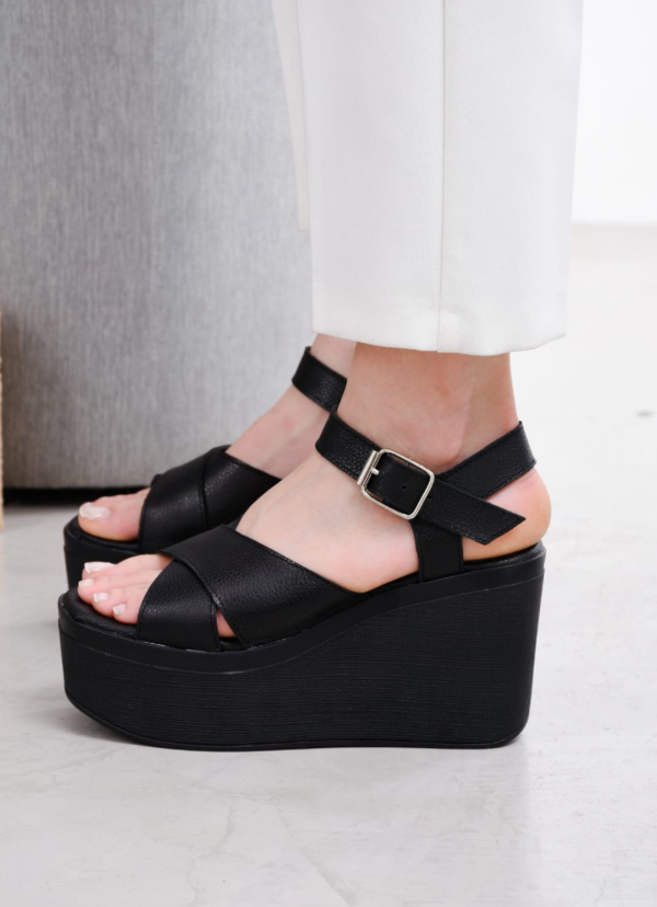 Sandalias con plataforma con altura de 12 CM aproximadamente, material de cuero vacuno .