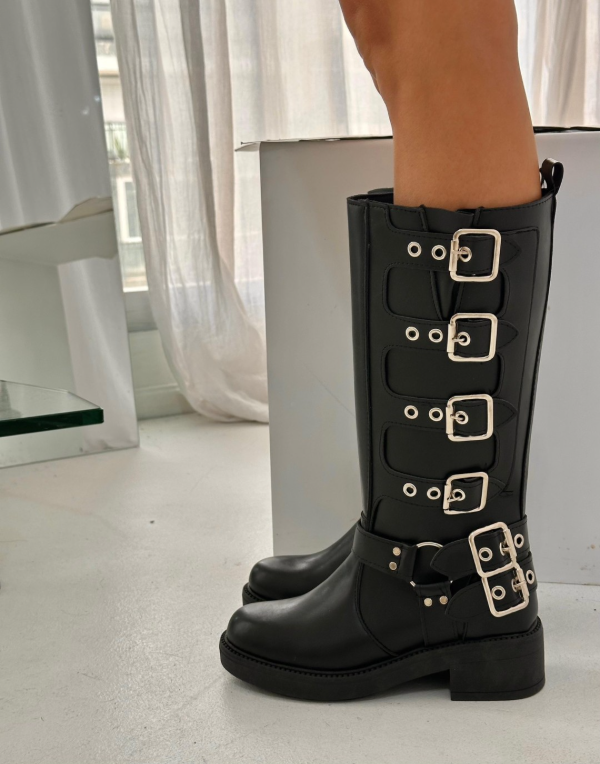 Botas de cuero vegans,con evillas. En negro liso. Súper cancheras y cómodas!!!