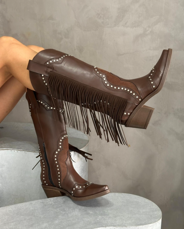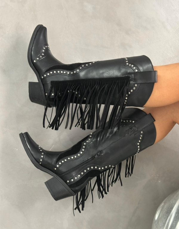 Texanas de cuero vegans, con detalle de tachas en la capellada y flecos , estilo vaquera, súper cancheras y cómodas!
