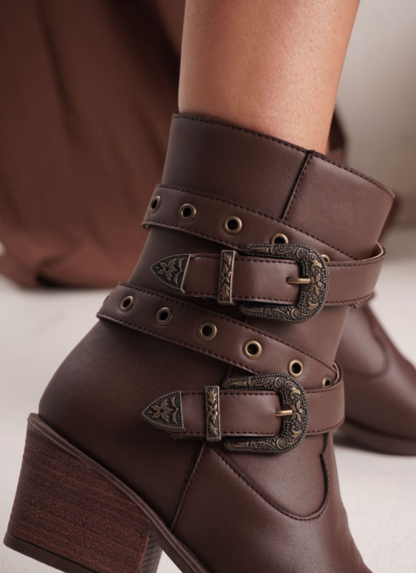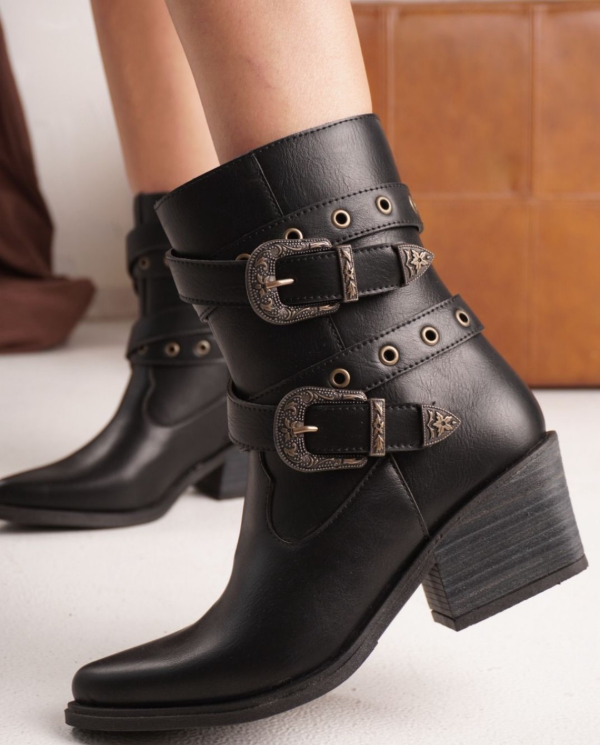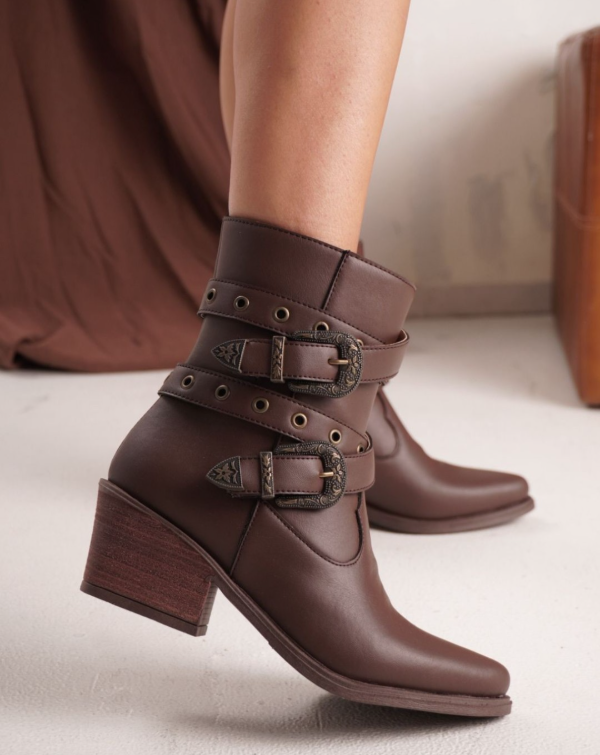Material de cuero 100% , estribo con detalle y tachas , cierre lateral para mejor calce , taco foleado de 6 CM aproximadamente . Antideslizante