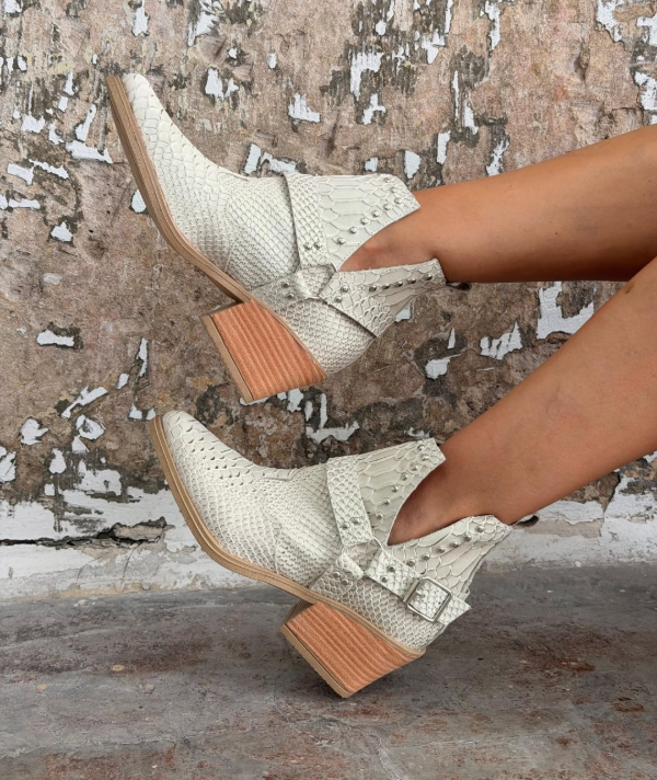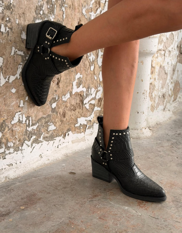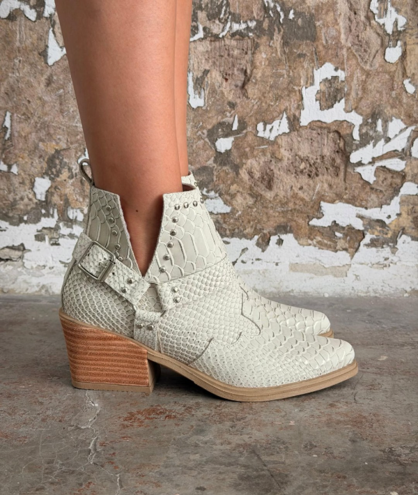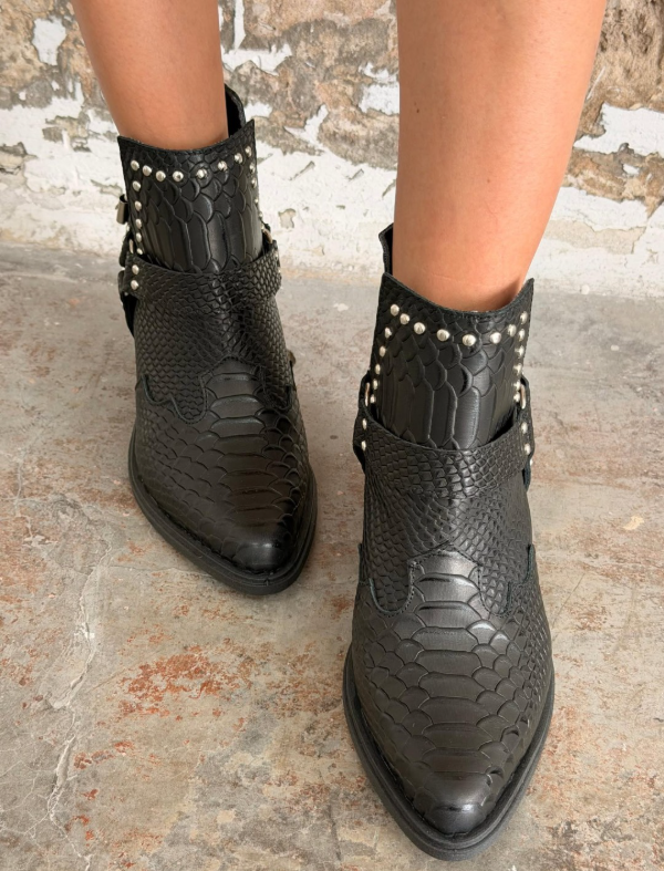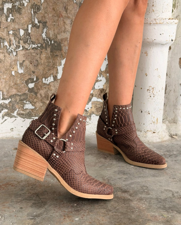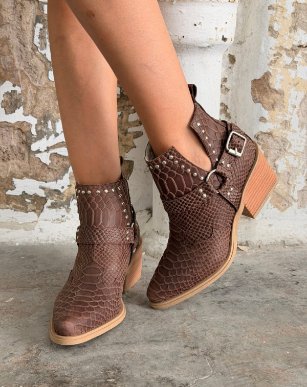 Texanas cortitas de cuero vacuno , con detalle de cinto y tachas. Súper cómodas . Capellada crocro . Taco foleado de 5 CM aproximadamente