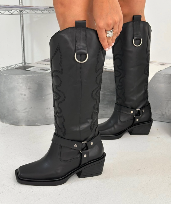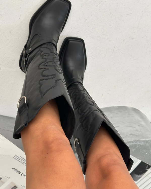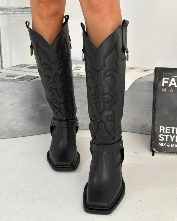 Texanas de cuero vegans- bordadas . Súper lindas y cancheras , caña alta. Punta cuadrada