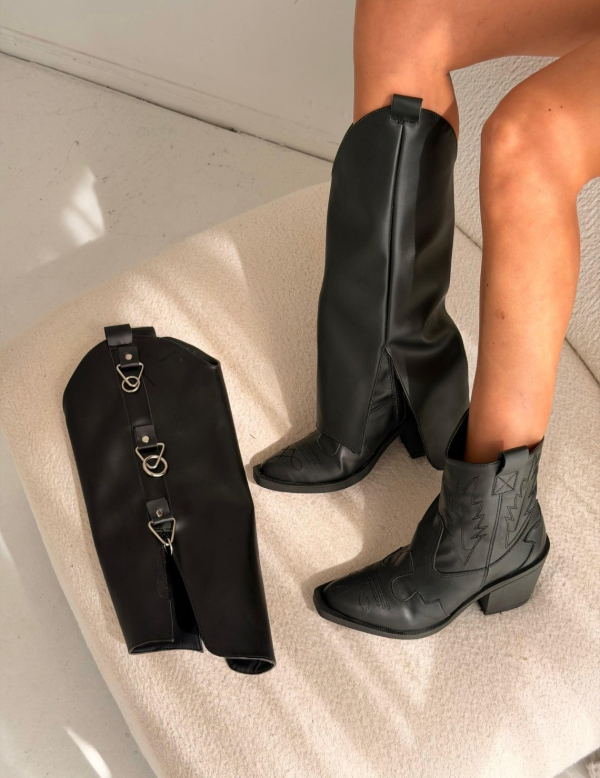 Texanas de cuero vegans, 2 en 1 , podes usarla como cortitas o con la bota alta desmontable . Taco de 7 CM aprox